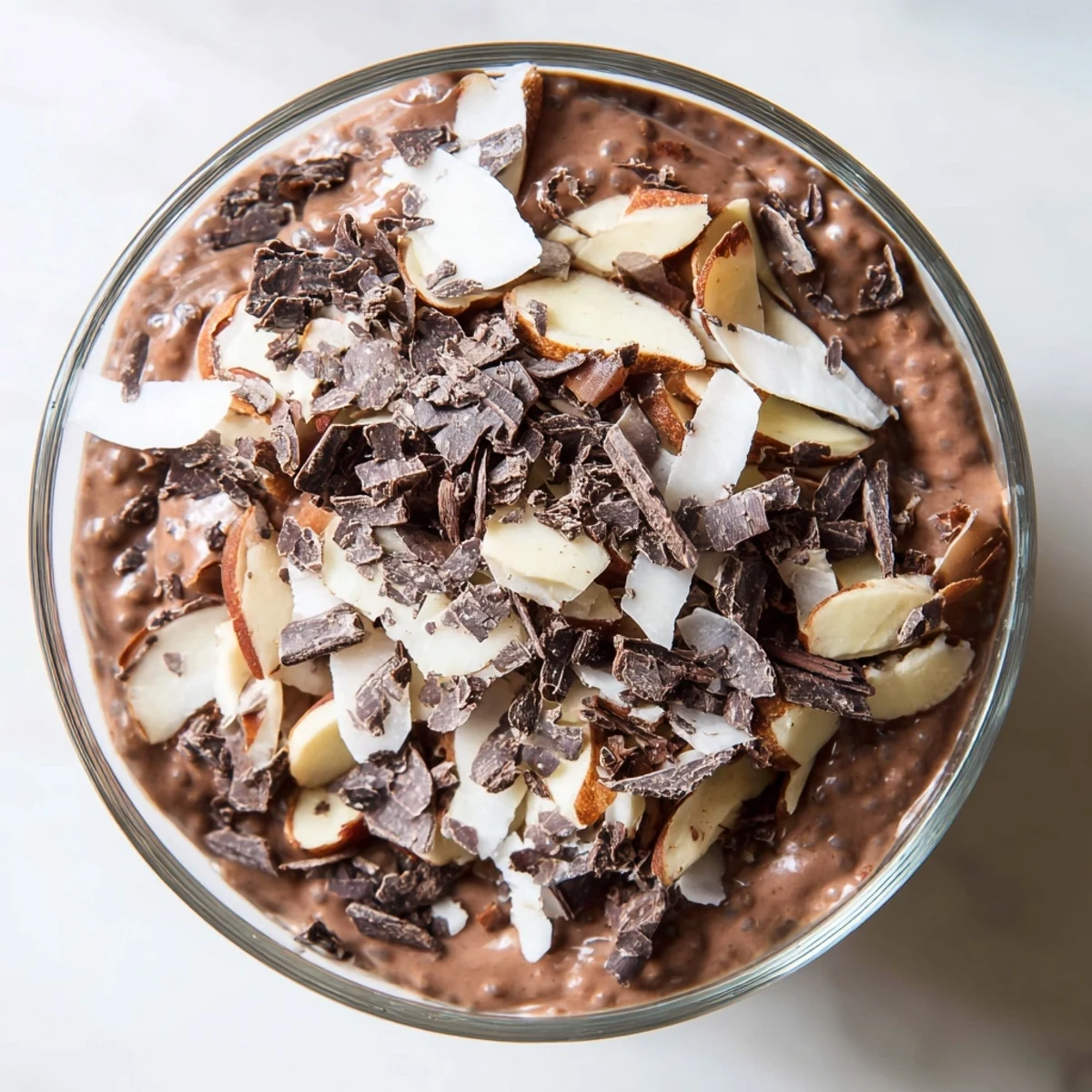 - Stir the pudding one more time before spooning it into your serving glasses. Top with toasted almonds shredded coconut and chocolate shavings if you are feeling fancy.