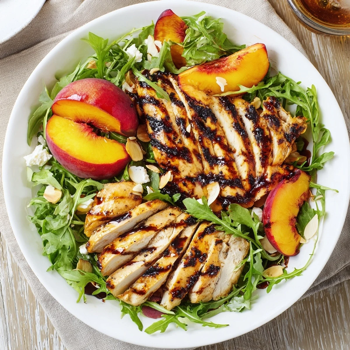 Ready in 35 minutes, this summer main combines charred nectarine wedges with grilled chicken, peppery arugula and torn basil. Crumbled feta and toasted almonds provide creamy-salty and crunchy contrasts, while a honey‑balsamic vinaigrette adds bright acidity. Grill fruit briefly for caramelization, rest and slice chicken, then toss gently to keep leaves crisp before serving.