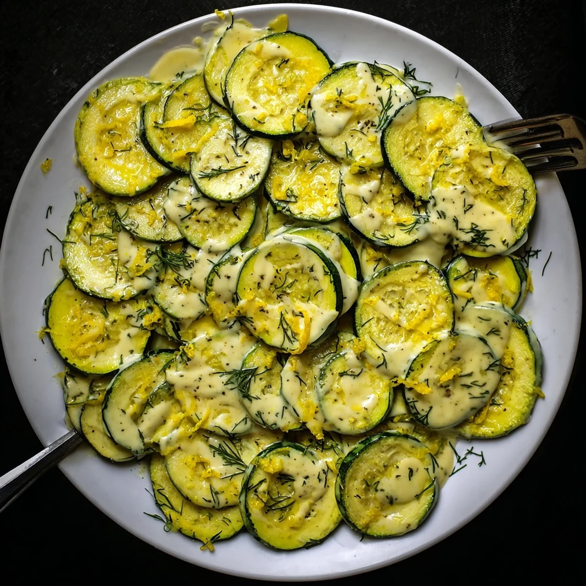 - Layer the zucchini on a serving dish, drizzle generously with tahini sauce, then scatter over lemon zest and extra dill. Serve warm, or let the flavors mellow together at room temperature.