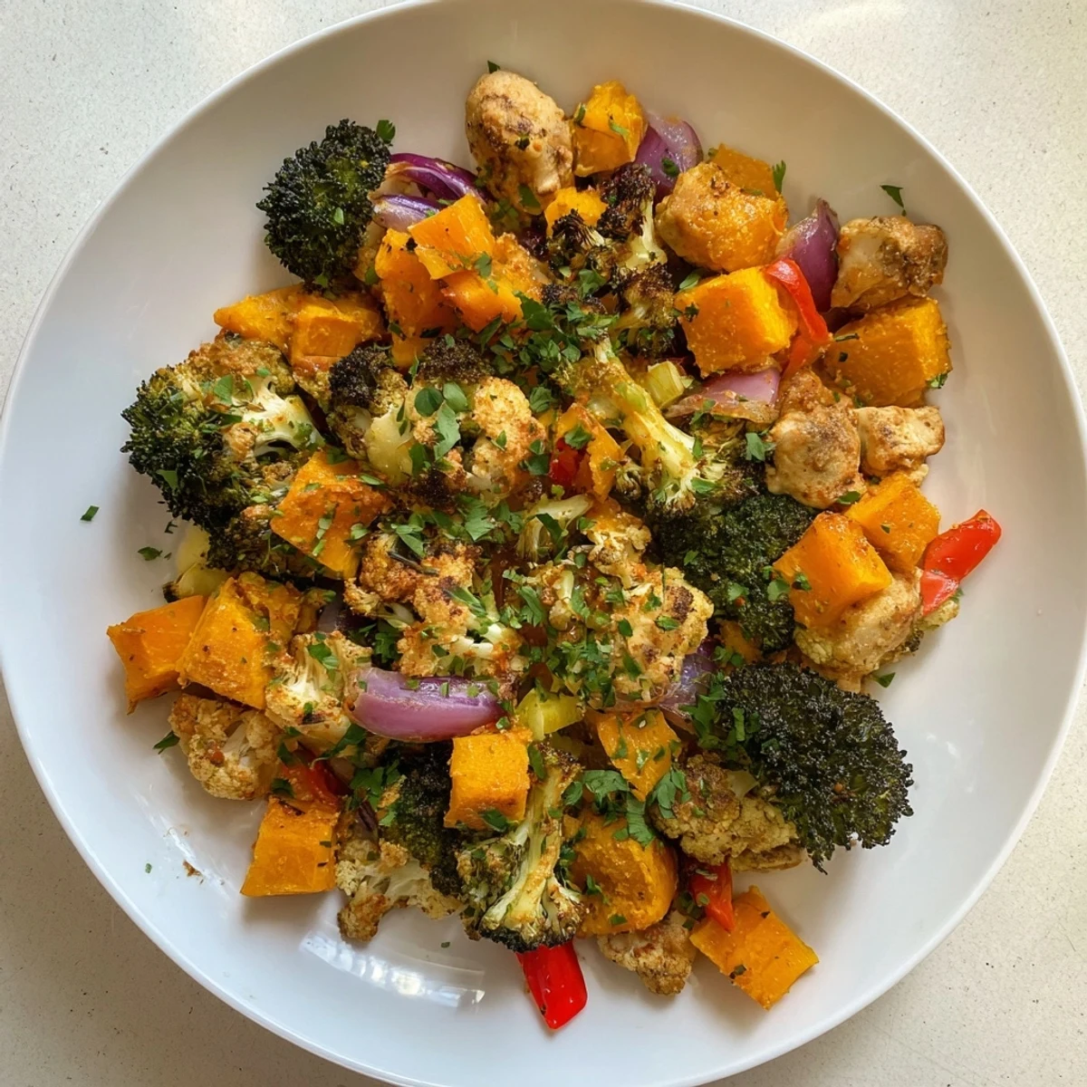 - Red onion: Softens and caramelizes in the oven, adding depth without overpowering anything.
